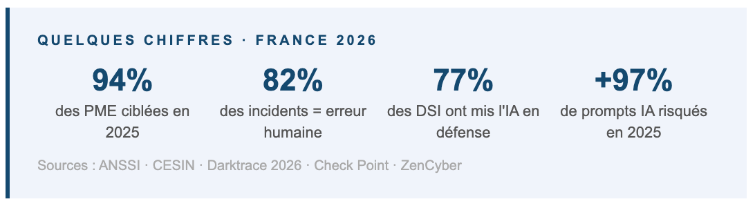 96% des organisations ayant intégré l’IA dans leur défense constatent un gain d’efficacité significatif (Darktrace, 2026). Et former ses équipes reste le geste le plus simple et le plus rentable.